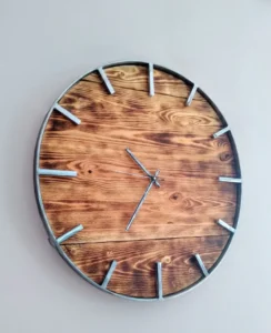 Zegar loft, industrialny. Zegar wiszący w stylu industrialnym, loftowym. Zegar jest wykonany ze stali w połączeniu z postarzanym oraz opalonym ogniem. Wyjątkowy wygląd i styl