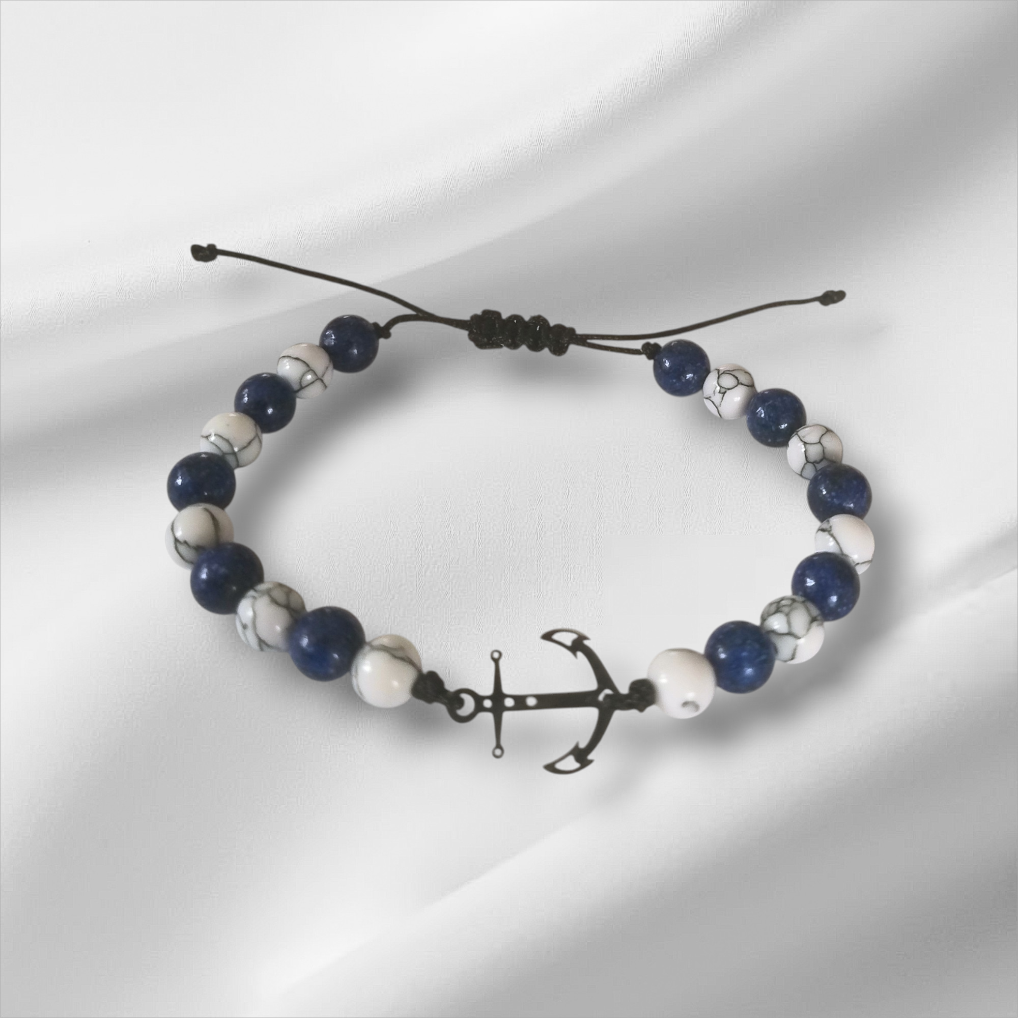 Regulowana bransoletka żeglarska z kotwicą z kamieni naturalnych